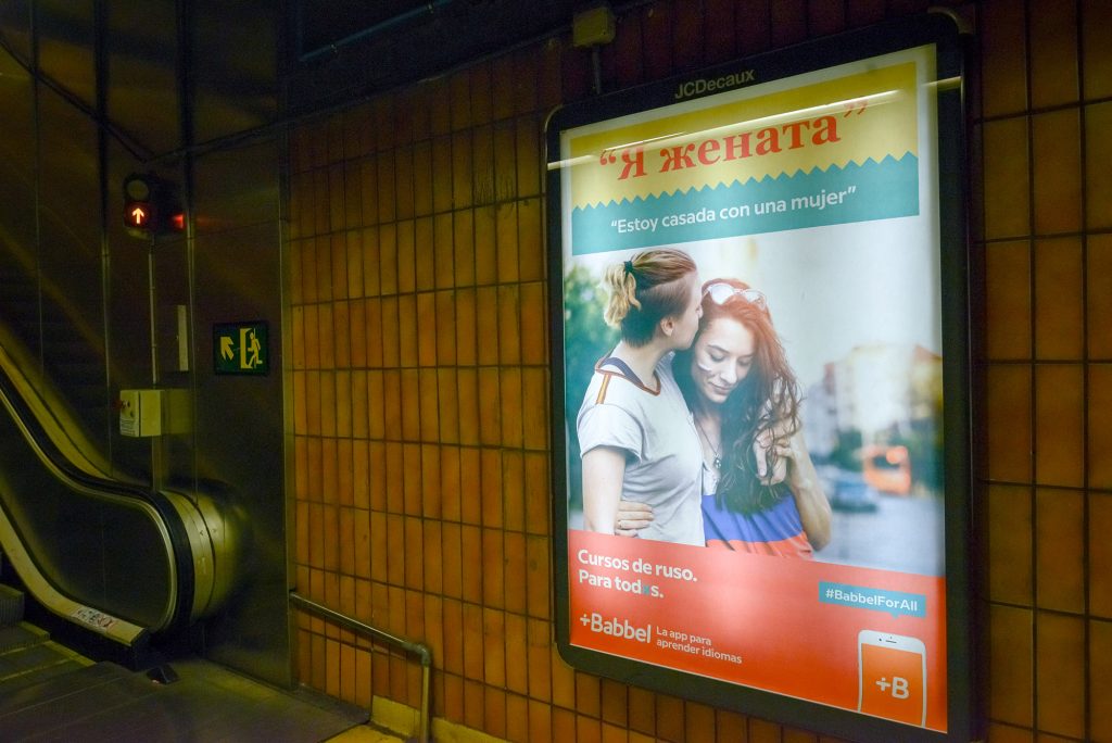 В Барселоне (Испания) стартовала рекламная кампания для россиян, желающих заключить однополые браки. В метро, на улицах размещены сотни рекламных плакатов, на которых изображены обнимающиеся мужчины или женщины с надписью на русском языке «Я замужем» или «Я жената». При этом с помощью одежды и изображения флага явный акцент сделан на том, что один человек россиянин(ка), а второй – испанец(ка). Сама реклама направлена на популяризацию мобильного приложения для изучения иностранных языков.